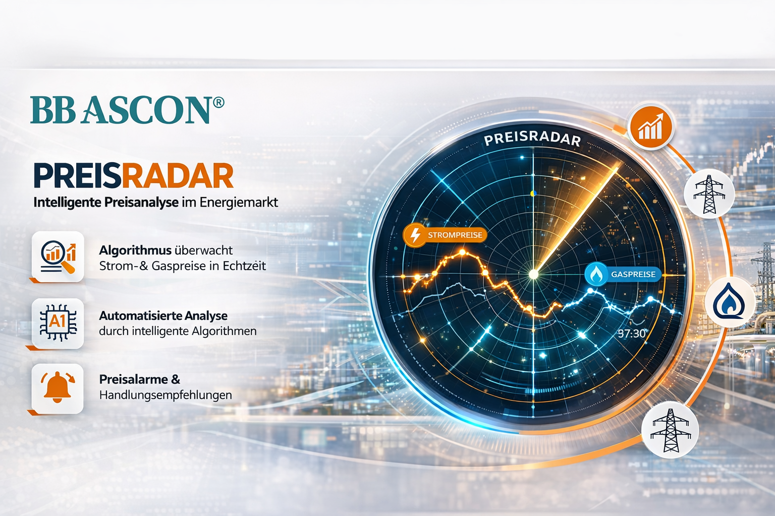 Unsere BB ASCON Produkte unterstützen Energie-Manager, Asset-Manager und Retail Trader dabei, Preisschwankungen bei Strom, Gas, Futures, Wertpapieren und Derivaten fundiert zu analysieren, gezielt zu nutzen und so die Wertschöpfung nachhaltig zu steigern – und das Risiko stets im Blick zu behalten.